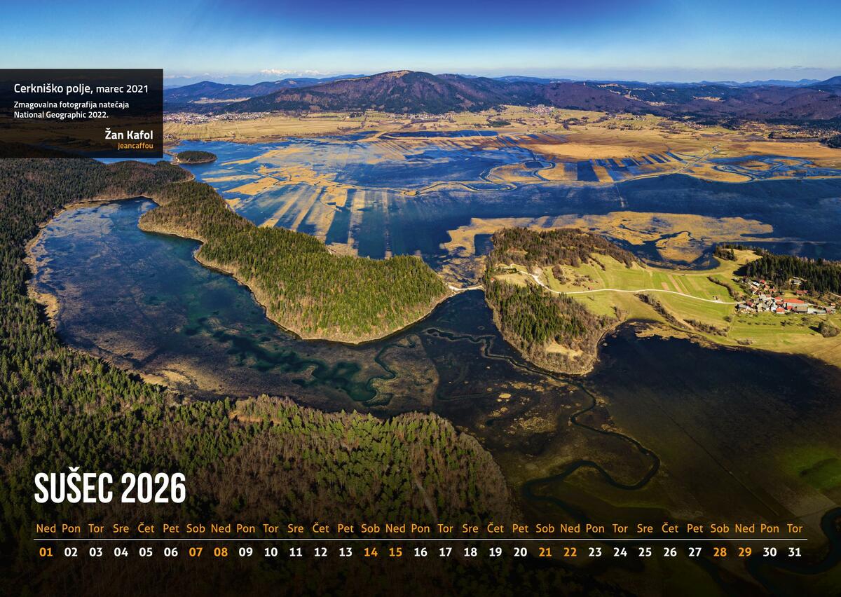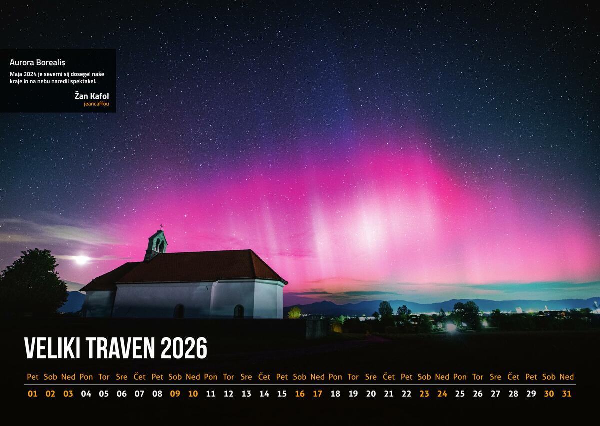 Ležeči stenski A3 format s prepoznavnimi motivi čez letne čase.